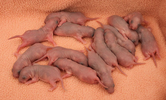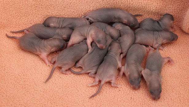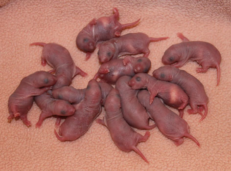 10th February - litter of 14 born first thing in the morning, all black eyed