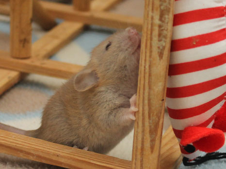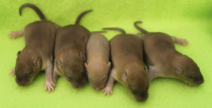 2nd March - mated, kittens due 25th March 23rd March - moved into the nursery cage having gained about 85g 25th March - 9 kittens born in the afternoon, but sadly there are only 5 survivors 24th April - the kittens have all grown well, possibly verging on being overweight, but appear to have visually rapid breathing which is unusual so I will be keeping a close eye on how that progresses. 9th May - the kittens have suffered from bloated bellies to varying degrees, and unfortunately the worst affected, doe 1, has now died. buck 1 - brown(?) chestnut dumbo (the runt)Click here for the family tree. |