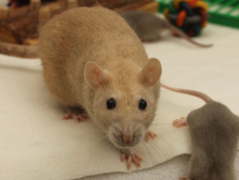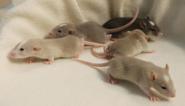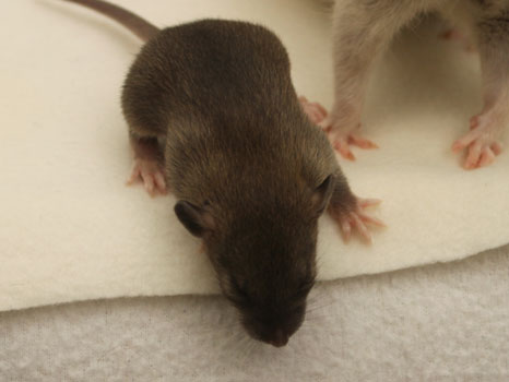 doe 3 - russian blue agouti dumbo (tail marked red)