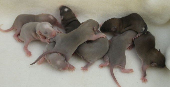 17/07/23: 9 days old, the litter palette: agouti, russian blue agouti, dove agouti, american cinnamon
