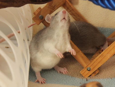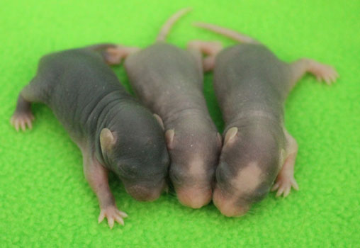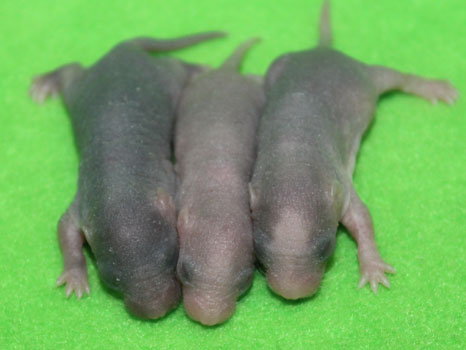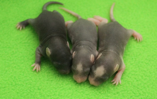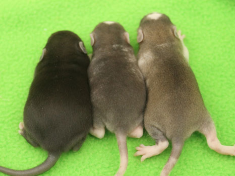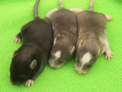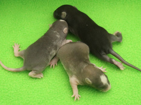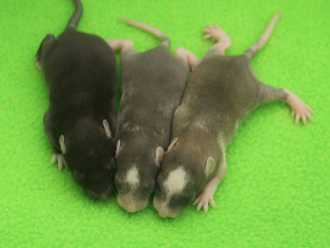 29th October - mated, litter due 21/11/23 12th November - Cheeky does not seem to be pregnant, so we will be trying again 14th November - remated, litter now due 07/12/23 29th November - Cheeky has gained weight well, so hopefully this mating will prove to be successful 5th December - moved into the maternity cage having gained 75g 7th December - small litter of 3 born in the morning, all black eyed and top eared the buck - blackClick here for the family tree. |