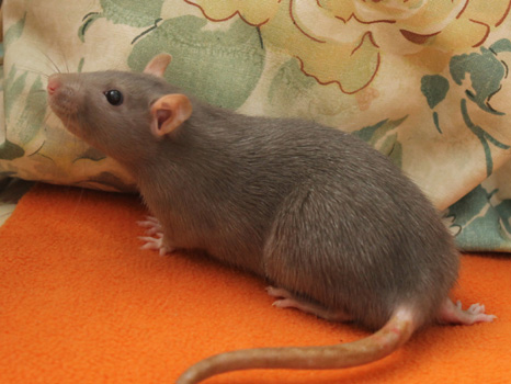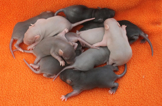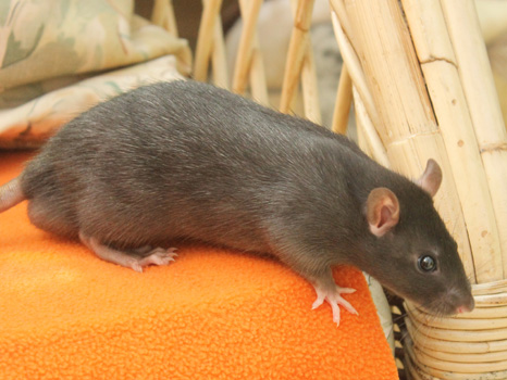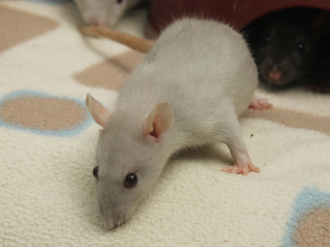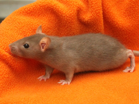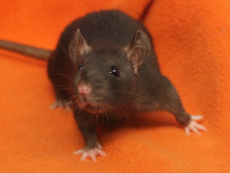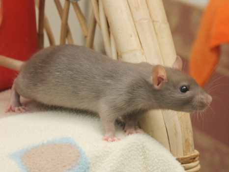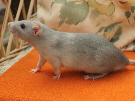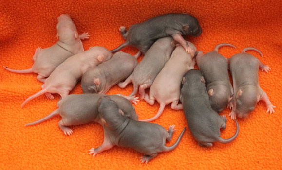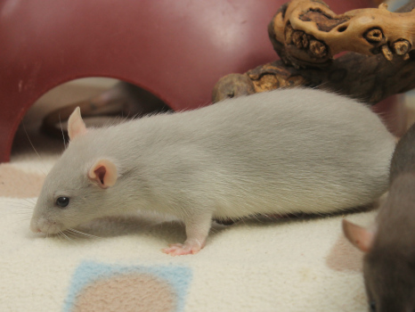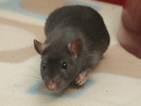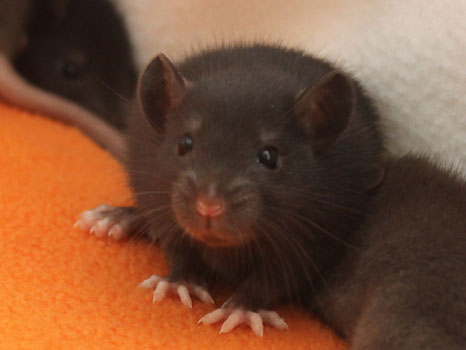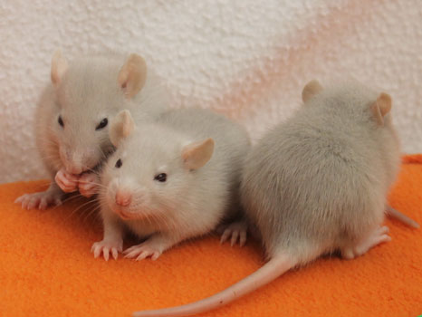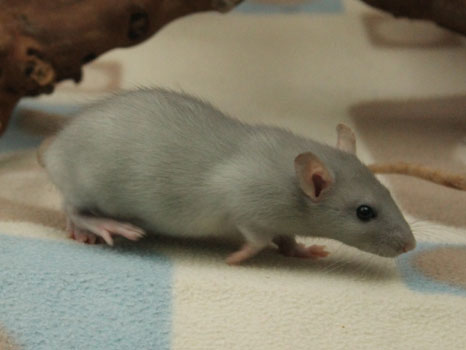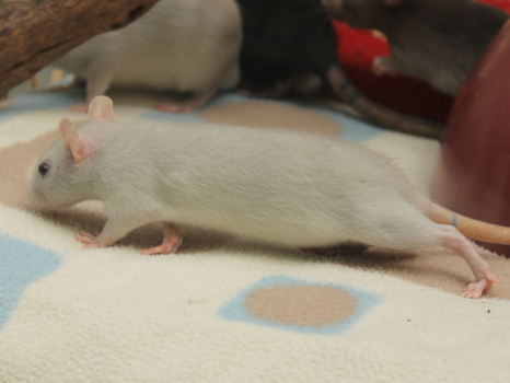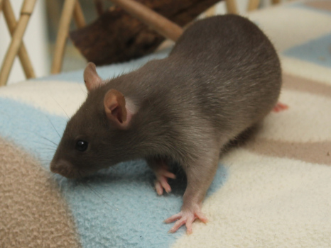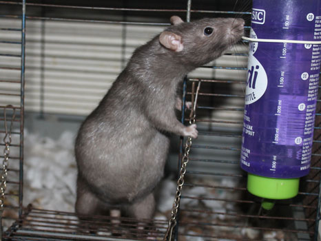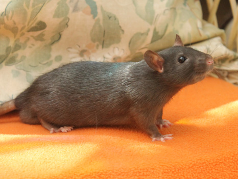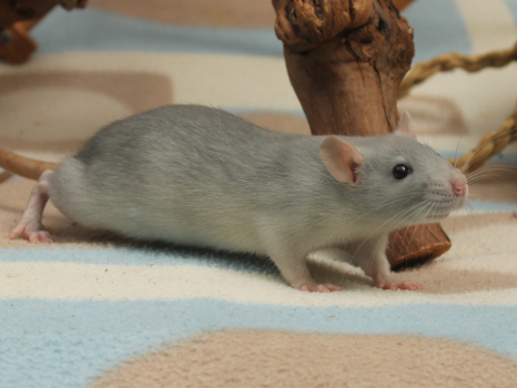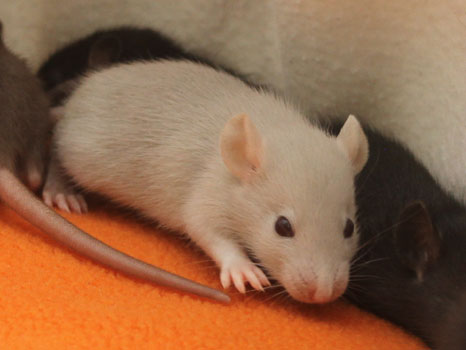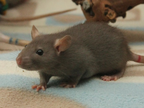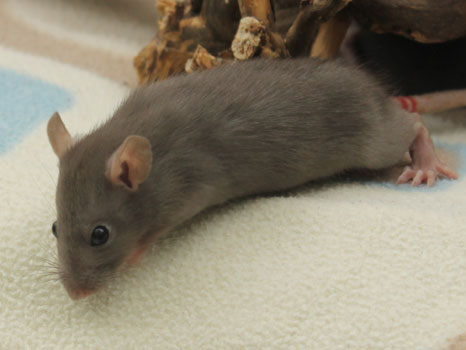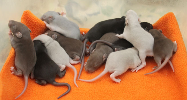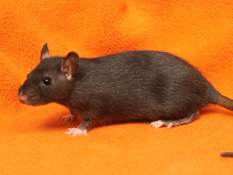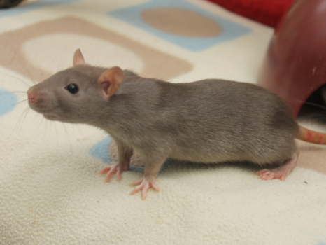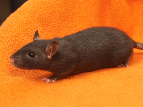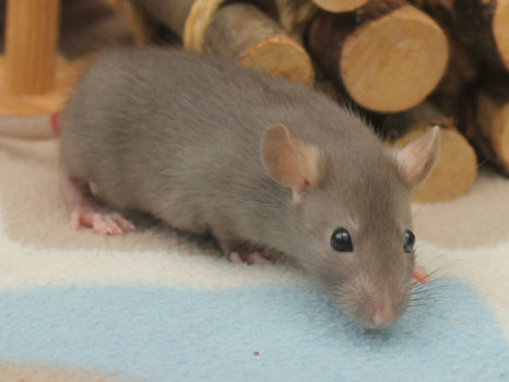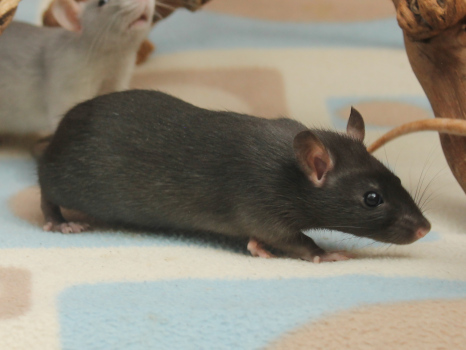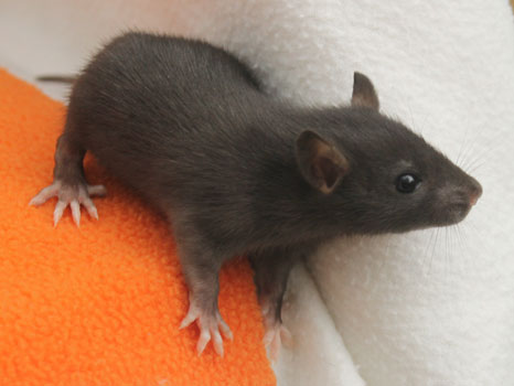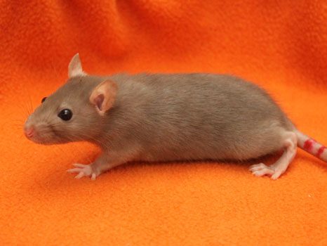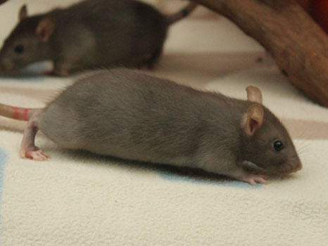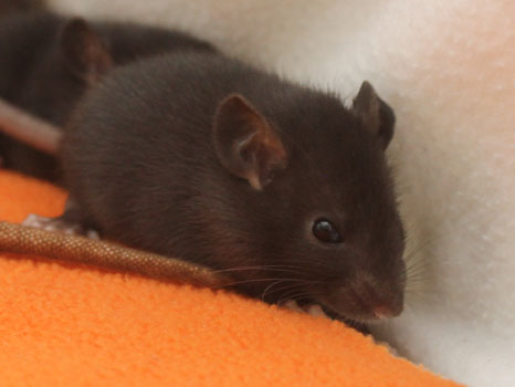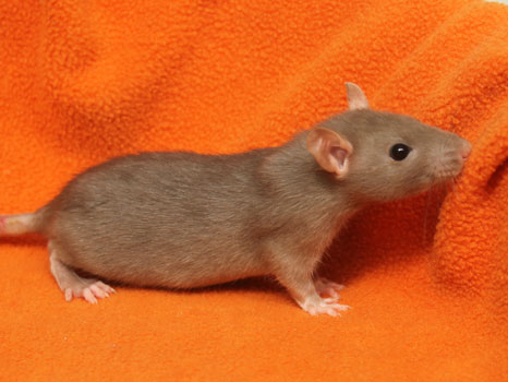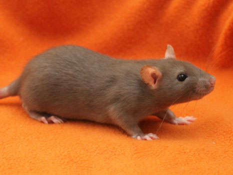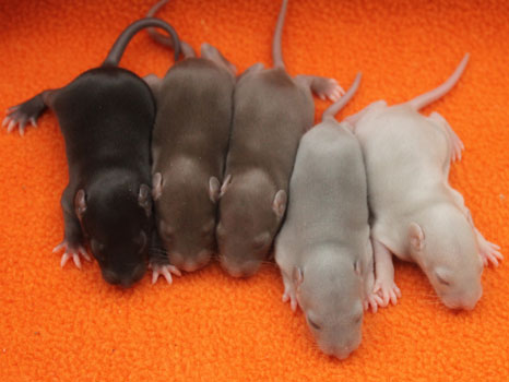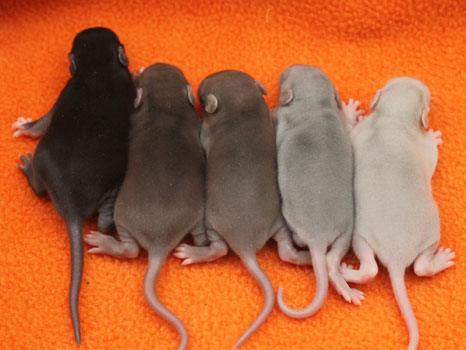 3rd April - mated, litter due 26th April 24th April - moved into the maternity cage having gained 130g 26th April - litter of 14 born first thing in the morning, all top eared, 12 survivors 28th April - no sign of the runt, so he may have sadly died 30th April - first guess at colours, there appear to be 5 so it's possible chocolate may be involved 6th May - pretty sure there's no chocolate, and the 2 shades of american mink will be due to normal variation buck 1 - quicksilver - has developed a head tilt at 6 weeksClick here for the family tree. |