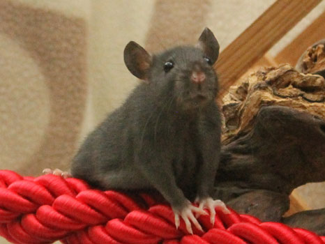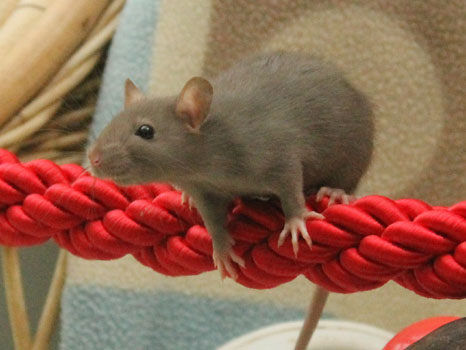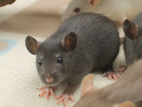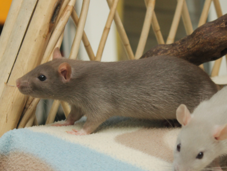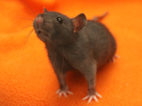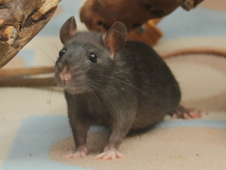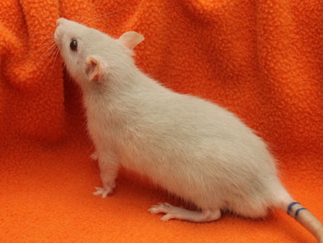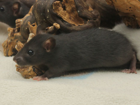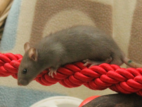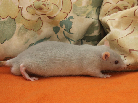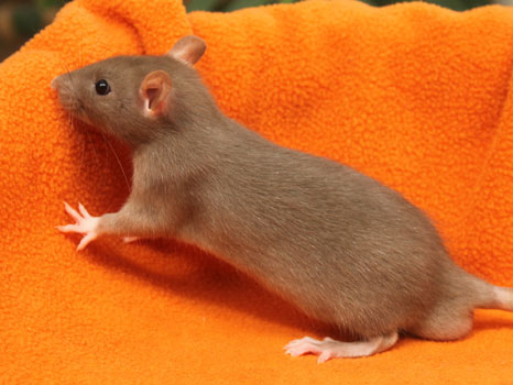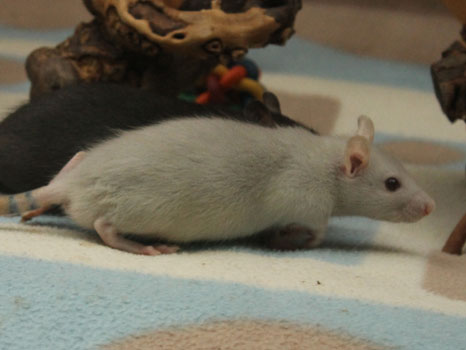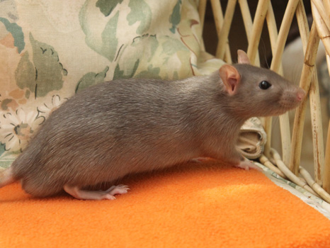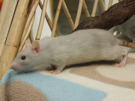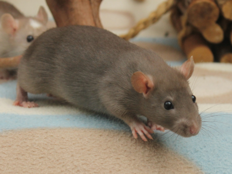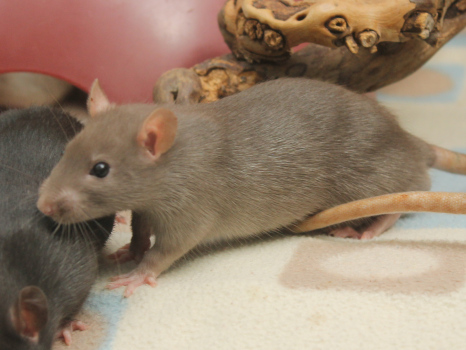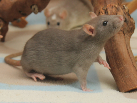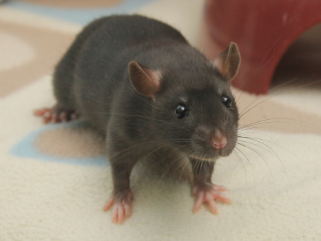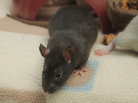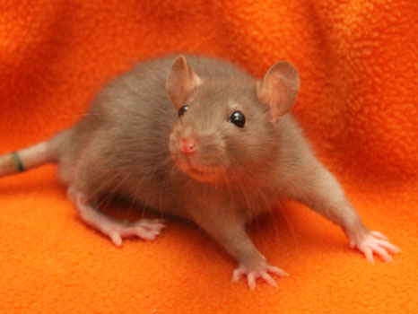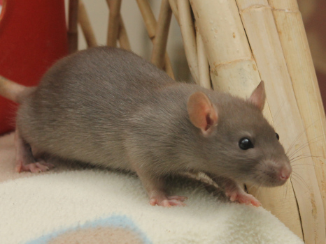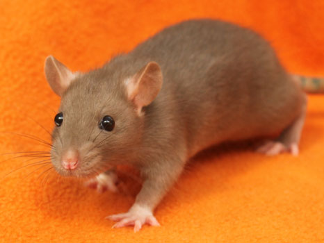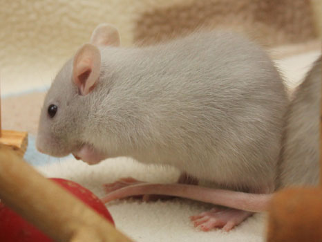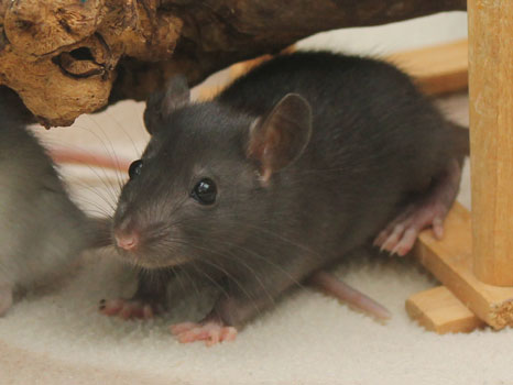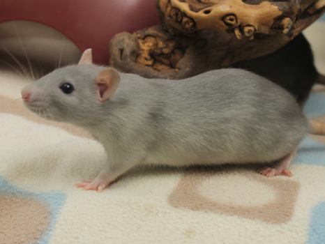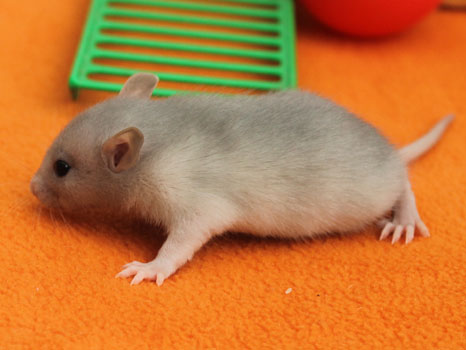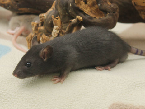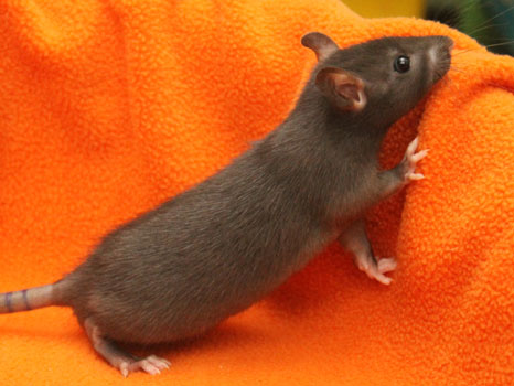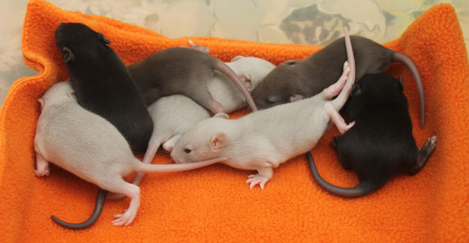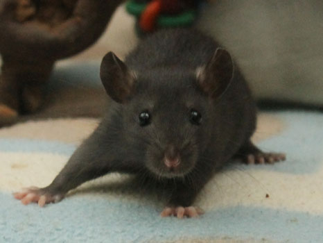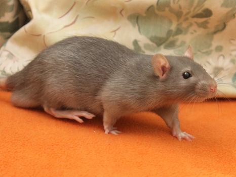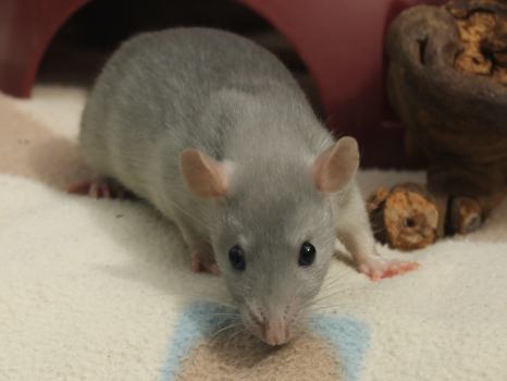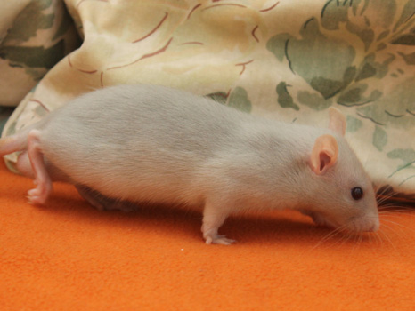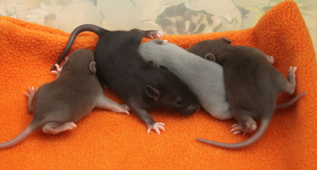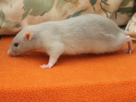 3rd April - mated, litter due 26th April 24th April - moved into the maternity cage having gained 130g 26th April - litter of 14 born first thing in the morning, all top eared, 12 survivors 28th April - no sign of the runt, so he may have sadly died 30th April - first guess at colours, there appear to be 5 so it's possible chocolate may be involved 6th May - pretty sure there's no chocolate, and the 2 shades of american mink will be due to normal variation buck 1 - quicksilver - has developed a head tilt at 6 weeksClick here for the family tree. |