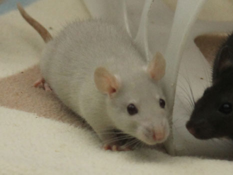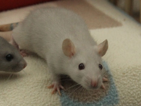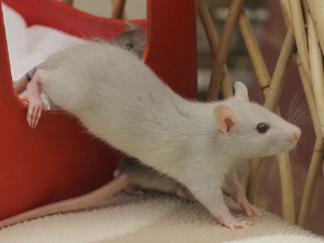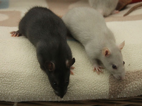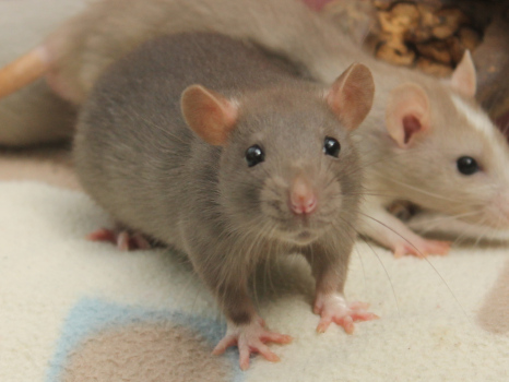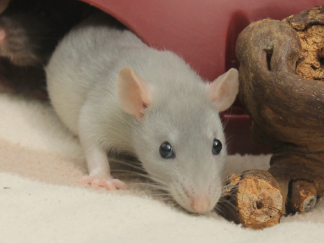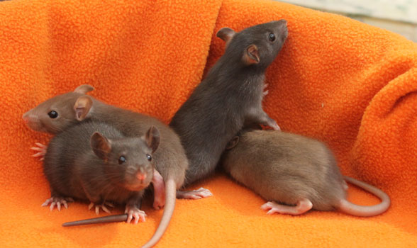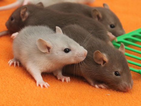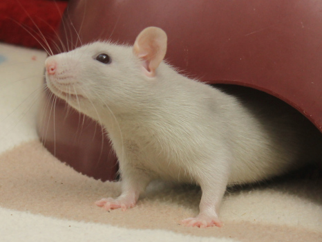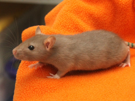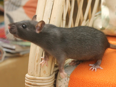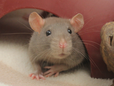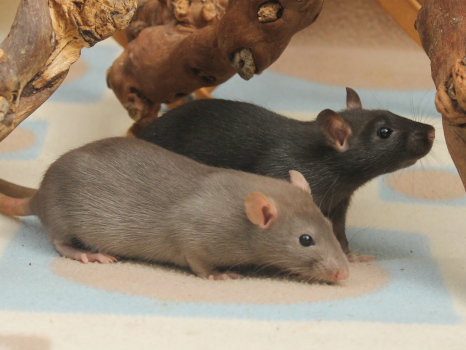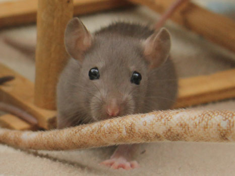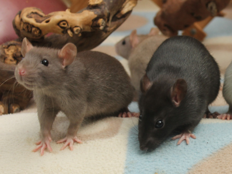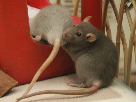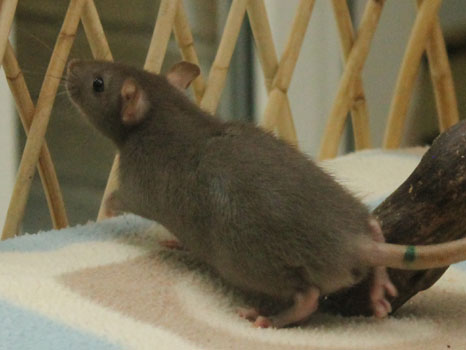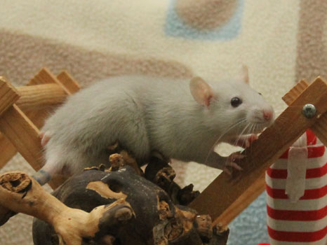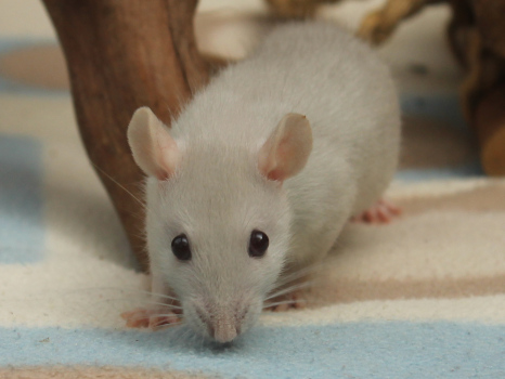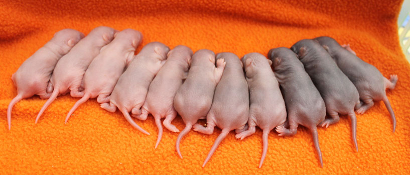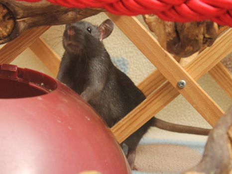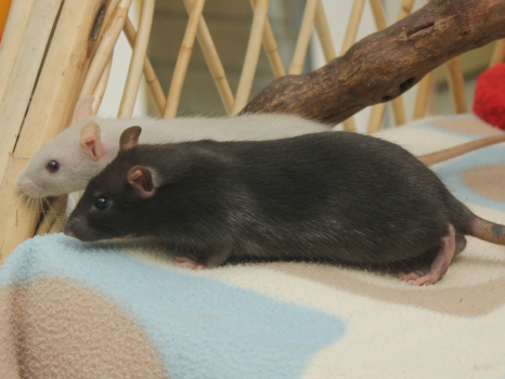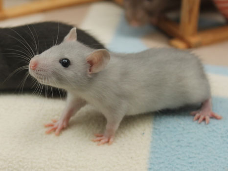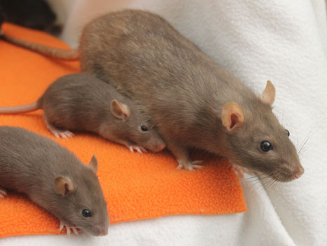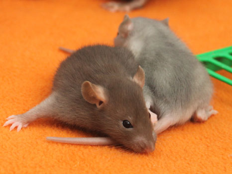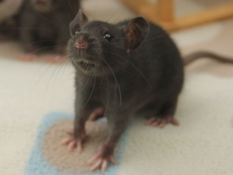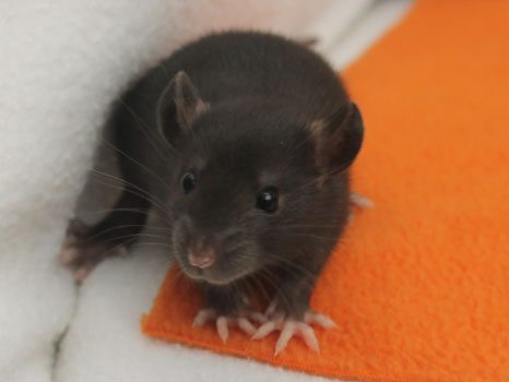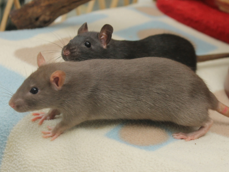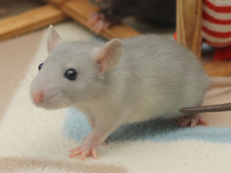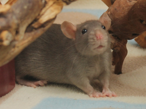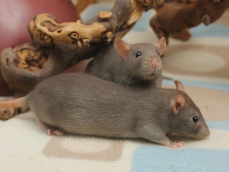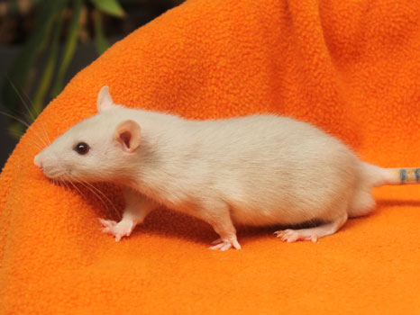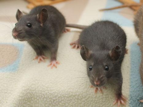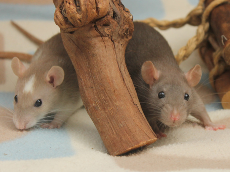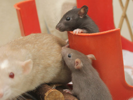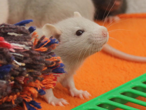 3rd April - mated, litter due 26th April 24th April - moved into the maternity cage having gained 130g 26th April - litter of 14 born first thing in the morning, all top eared, 12 survivors 28th April - no sign of the runt, so he may have sadly died 30th April - first guess at colours, there appear to be 5 so it's possible chocolate may be involved 6th May - pretty sure there's no chocolate, and the 2 shades of american mink will be due to normal variation buck 1 - quicksilver - has developed a head tilt at 6 weeksClick here for the family tree. |