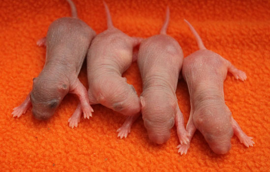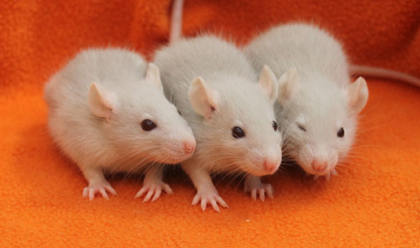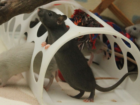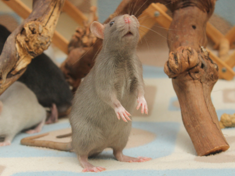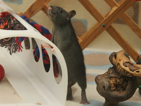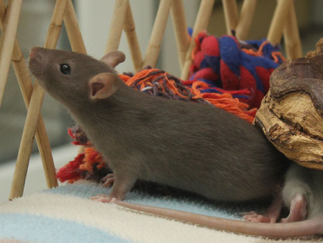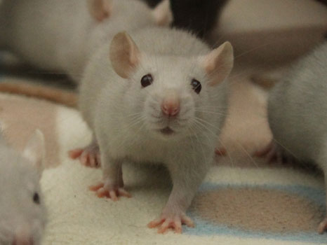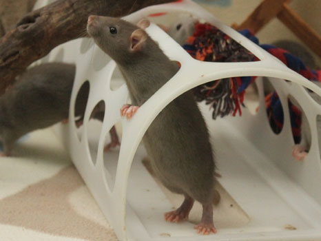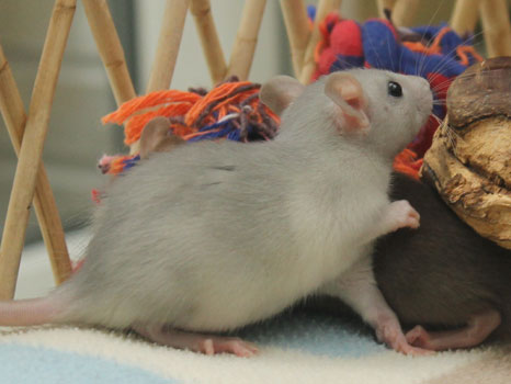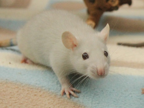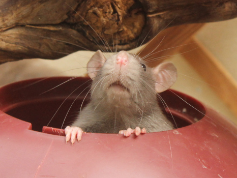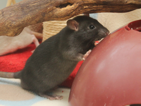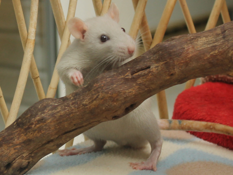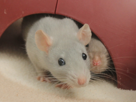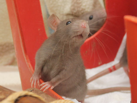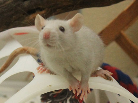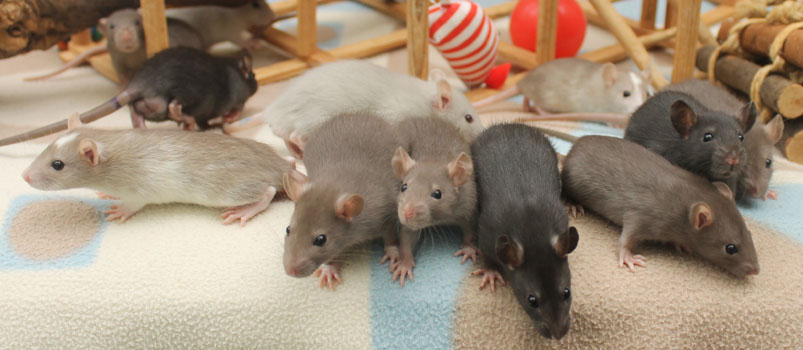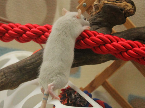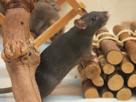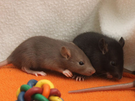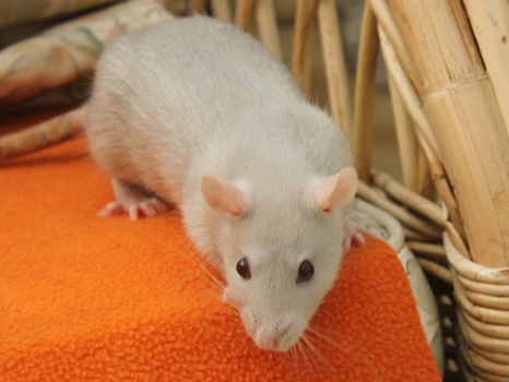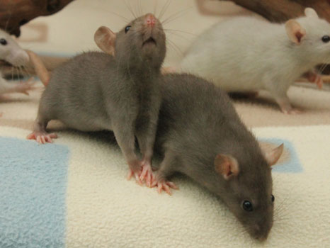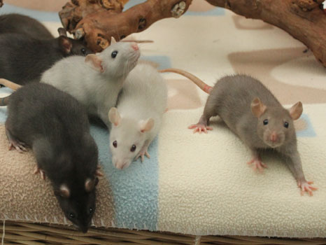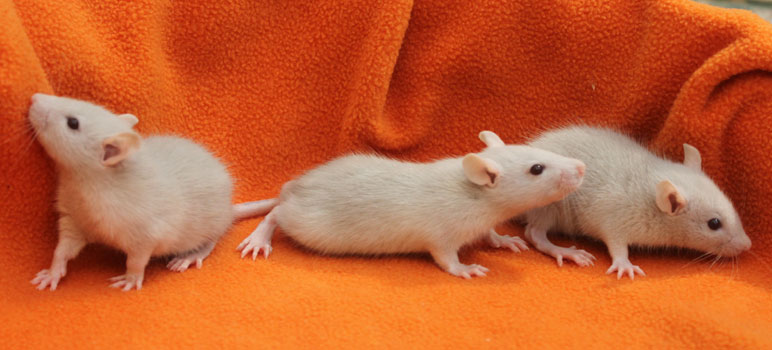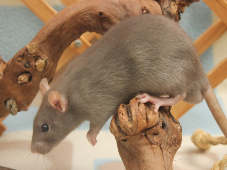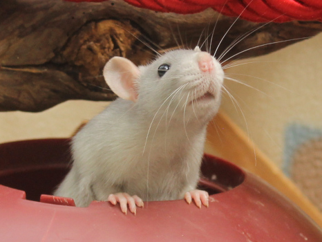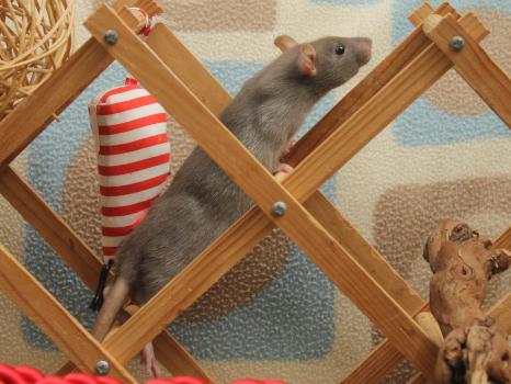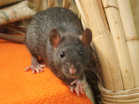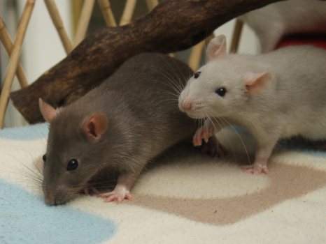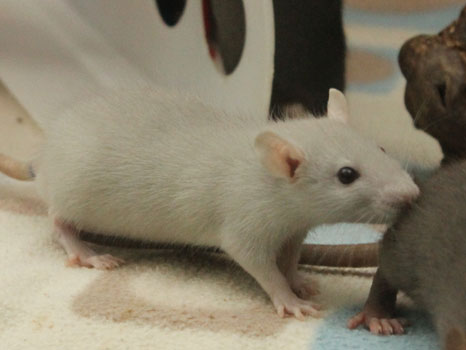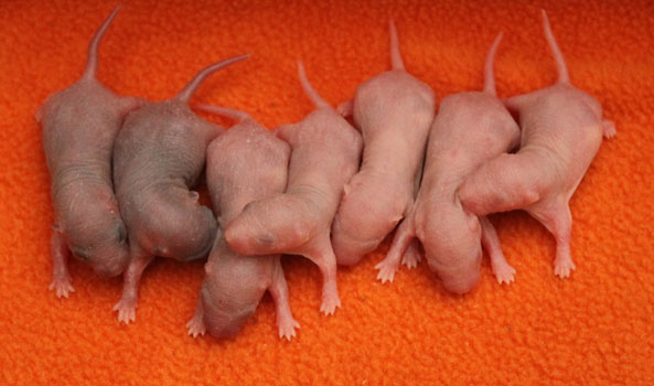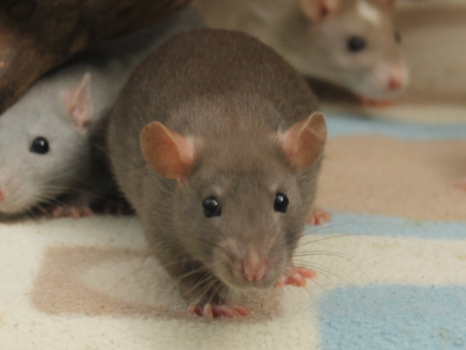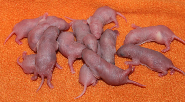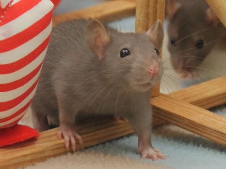 3rd April - mated, litter due 26th April 24th April - moved into the maternity cage having gained 130g 26th April - litter of 14 born first thing in the morning, all top eared, 12 survivors 28th April - no sign of the runt, so he may have sadly died 30th April - first guess at colours, there appear to be 5 so it's possible chocolate may be involved 6th May - pretty sure there's no chocolate, and the 2 shades of american mink will be due to normal variation buck 1 - quicksilver - has developed a head tilt at 6 weeksClick here for the family tree. |