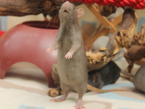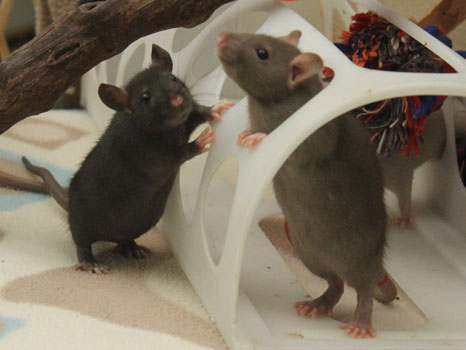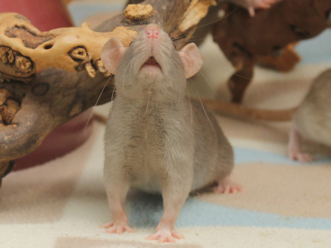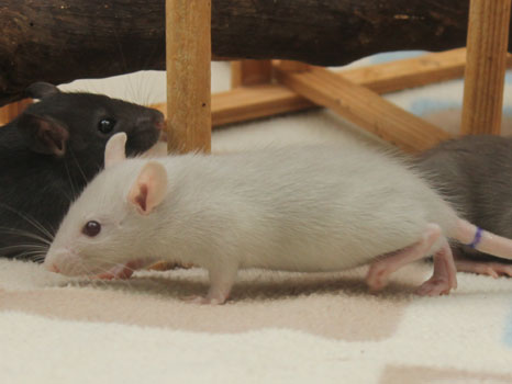 23/05/24: 27 days old, free range play with Pea, Picketty, and her babies - Pea and Picketty are cage mates and delighted to accept each other's babies, so they will now be living as one large group