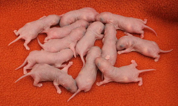 9th October - litter of 12 born in the morning, all black eyed so no american mink babies for me!