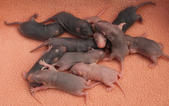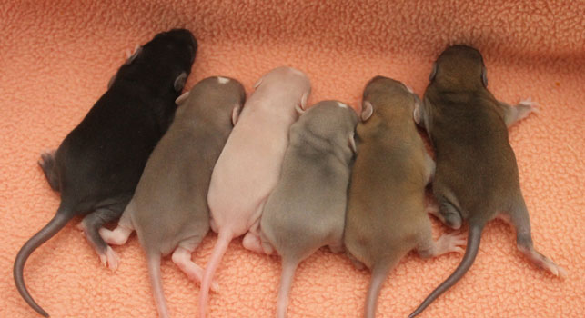 01/11/24: 9 days old, the litter palette: black, american mink, russian dove, russian blue agouti, american cinnamon, agouti